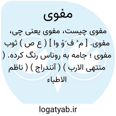 مفوی. [ م ُ ف َوْ وا ] ( ع ص ) ثوب مفوی؛ جامه به روناس رنگ کرده. ( منتهی الارب ) ( آنندراج ) ( ناظم الاطباء ) ( از اقرب الموارد ).