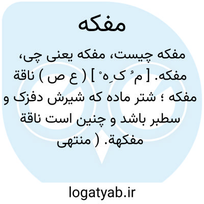 لغت نامه دهخدا مفکه. [ م ُ ک ِه ْ ] ( ع ص ) ناقة مفکه؛ شتر ماده که شیرش دفزک و سطبر باشد و چنین است ناقة مفکهة. ( منتهی الارب ) ( از آنندراج ) ( ناظم الاطباء ) ( از اقرب الموارد ).