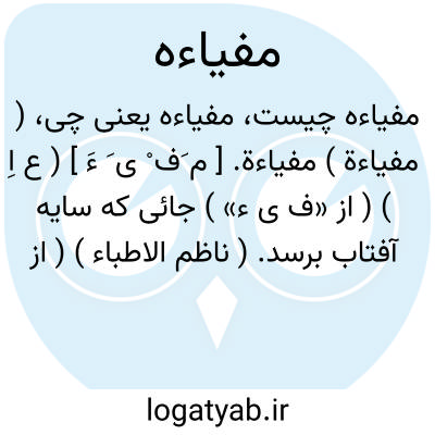 ( مفیاءة ) مفیاءة. [ م َف ْ ی َ ءَ ] ( ع اِ ) ( از «ف ی ء» ) جائی که سایه آفتاب برسد. ( ناظم الاطباء ) ( از منتهی الارب ) ( از آنندراج ). موضع سایه آفتاب و گویند جائی که آفتاب بدانجا نتابد. ( از محیط المحیط ) ( از اقرب الموارد ). سایه گاه. ( یادداشت به خط مرحوم دهخدا ). مَفیُؤَة. ( محیط المحیط ) ( اقرب الموارد ). و رجوع به مفیوءة شود.