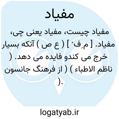 مفیاد. [ م ِف ْ ] ( ع ص ) آنکه بسیار خرج می کندو فایده می دهد. ( ناظم الاطباء ) ( از فرهنگ جانسون ).