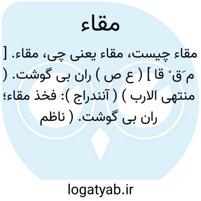 لغت نامه دهخدا مقاء. [ م َق ْ قا ] ( ع ص ) ران بی گوشت. ( منتهی الارب ) ( آنندراج ): فخذ مقاء؛ ران بی گوشت. ( ناظم الاطباء ) ( از اقرب الموارد ). || زن بلندقامت. ج، مُق. ( از ذیل اقرب الموارد ). و رجوع به مق شود.