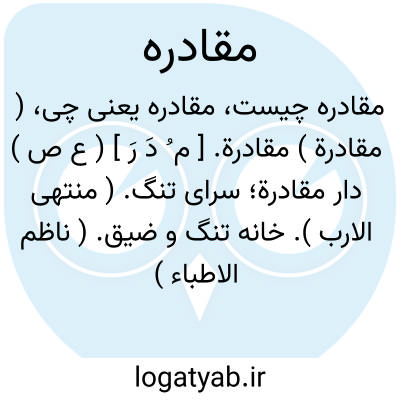 ( مقادرة ) مقادرة. [ م ُ دَ رَ ] ( ع ص ) دار مقادرة؛ سرای تنگ. ( منتهی الارب ). خانه تنگ و ضیق. ( ناظم الاطباء ) ( از اقرب الموارد ).