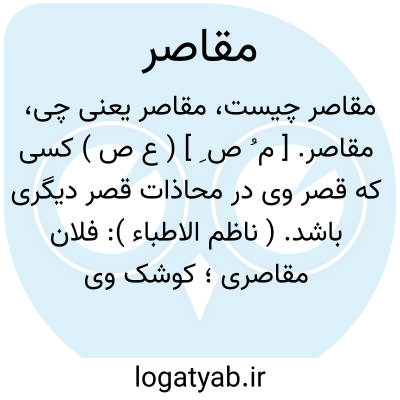 مقاصر. [ م ُ ص ِ ] ( ع ص ) کسی که قصر وی در محاذات قصر دیگری باشد. ( ناظم الاطباء ): فلان مقاصری؛ کوشک وی روباروی کوشک من است. ( منتهی الارب ) ( از اقرب الموارد ).