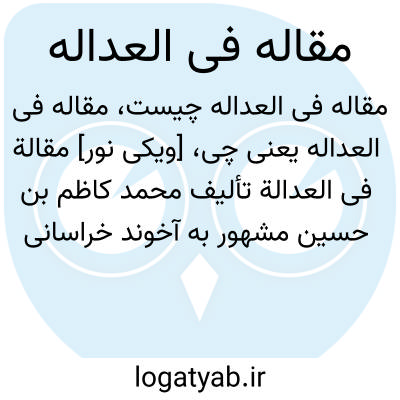 [ویکی نور] مقالة فی العدالة تألیف محمد کاظم بن حسین مشهور به آخوند خراسانی از فقهای بزرگ شیعه در آغاز قرن چهاردهم هجری قمری و از علمای بزرگ حوزه علمیه نجف اشرف. و متوفای سال 1329 هجری قمری.