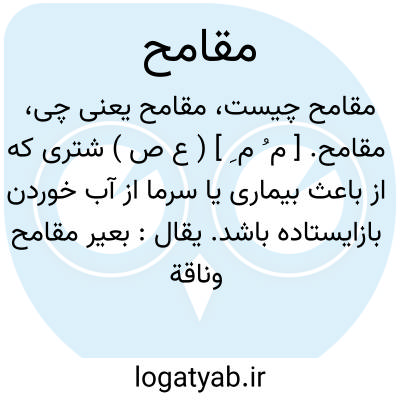 مقامح. [ م ُ م ِ ] ( ع ص ) شتری که از باعث بیماری یا سرما از آب خوردن بازایستاده باشد. یقال: بعیر مقامح وناقة مقامح. ( منتهی الارب ) ( از آنندراج ) ( از ناظم الاطباء ). شتری که بر آب وارد شود و از بیماری و یا سردی آب از آب خوردن خودداری کند. ( از اقرب الموارد ).