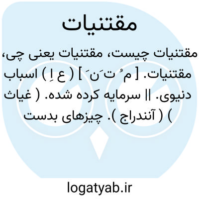 لغت نامه دهخدا مقتنیات. [ م ُ ت َن َ ] ( ع اِ ) اسباب دنیوی. || سرمایه کرده شده. ( غیاث ) ( آنندراج ). چیزهای بدست آمده. مکتسبات.