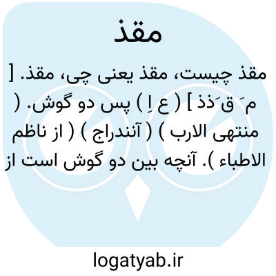 مقذ. [ م َ ق َذذ ] ( ع اِ ) پس دو گوش. ( منتهی الارب ) ( آنندراج ) ( از ناظم الاطباء ). آنچه بین دو گوش است از پس. ( از اقرب الموارد ) ( از بحرالجواهر ). || منتهای روییدنگاه موی پس سر. ( منتهی الارب ) ( آنندراج ) ( ناظم الاطباء ). منتهای روییدنگاه موی ازمؤخر سر و گویند از مقدم آن. ( از اقرب الموارد ).