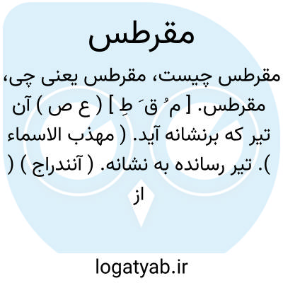 مقرطس. [ م ُ ق َ طِ ] ( ع ص ) آن تیر که برنشانه آید. ( مهذب الاسماء ). تیر رسانده به نشانه. ( آنندراج ) ( از منتهی الارب ) ( از اقرب الموارد ). || آن که تیر را به نشانه می زند. || آنکه جامه قرطاس مصری دارد. || مالک کاغذ. || دختر سپید کشیده قامت. ( ناظم الاطباء ).