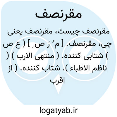 مقرنصف. [ م ُ رَ ص ِ ] ( ع ص ) شتابی کننده. ( منتهی الارب ) ( ناظم الاطباء ). شتاب کننده. ( از اقرب الموارد ). || ( اِ ) شیر بیشه. ( منتهی الارب ) ( ناظم الاطباء ) ( از اقرب الموارد ).