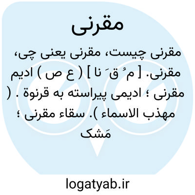 لغت نامه دهخدا مقرنی. [ م ُ ق َ نا ] ( ع ص ) ادیم مقرنی؛ ادیمی پیراسته به قرنوة. ( مهذب الاسماء ). سقاء مقرنی؛ مَشک به قرنوة پیراسته. ( منتهی الارب ) ( آنندراج ) ( ناظم الاطباء ) ( از اقرب الموارد ).مقرنی. [ م ُ ق َ نا ] ( ع اِ ) مار شاخدار. ( ناظم الاطباء ) ( از فرهنگ جانسون ). و رجوع به مقرنة شود.