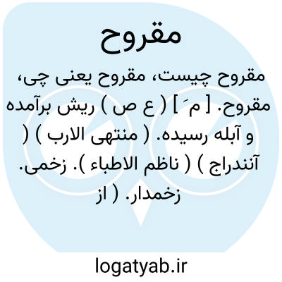 مقروح. [ م َ ] ( ع ص ) ریش برآمده و آبله رسیده. ( منتهی الارب ) ( آنندراج ) ( ناظم الاطباء ). زخمی. زخمدار. ( از اقرب الموارد ): اشک دیده انام مسفوح و چشم شخص اسلام مقروح و مجروح. ( ترجمه تاریخ یمینی چ 1 تهران ص 444 ). || طریق مقروح؛ راه نیک پاسپرده. ( منتهی الارب ) ( آنندراج ) ( از ناظم الاطباء ) ( از اقرب الموارد ).