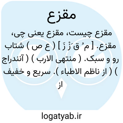 مقزع. [ م ُ ق َزْ زَ ] ( ع ص ) شتاب رو و سبک. ( منتهی الارب ) ( آنندراج ) ( از ناظم الاطباء ). سریع و خفیف از هر چیز. ( از اقرب الموارد ). || نویدرسان که جهت بشارت مجرد و از اشغال دیگر فارغ کرده باشند او را. ( منتهی الارب ) ( آنندراج ) ( از ناظم الاطباء ) ( از اقرب الموارد ). || اسب برکنده و تنک موی پیشانی. ( منتهی الارب ) ( آنندراج ) ( از ناظم الاطباء ). اسبی که موی پیشانی وی کنده شده و تنک گردیده باشد و گویند اسبی که خلقةً تنک موی پیشانی باشد. ( از اقرب الموارد ). || مرد تنک موی پیشانی از سرشت. ( منتهی الارب ) ( آنندراج ). مردی که از سرشت موی پیشانی وی تنک باشد. ( ناظم الاطباء ). || مرد تنک موی سبک رفتار. ( منتهی الارب ) ( آنندراج ) ( ناظم الاطباء ). آن که بر سر وی جز چند تار موی پراکنده نباشد و باد آنها را پریشان کند. ( از اقرب الموارد ). || اسب آماده به دوانیدن. ( منتهی الارب ) ( آنندراج ) ( از ناظم الاطباء ).