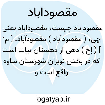 ( مقصودآباد ) مقصودآباد. [ م َ ] ( اِخ ) دهی از دهستان بیات است که در بخش نوبران شهرستان ساوه واقع است و 854 تن سکنه دارد. ( از فرهنگ جغرافیایی ایران، ج 1 ).