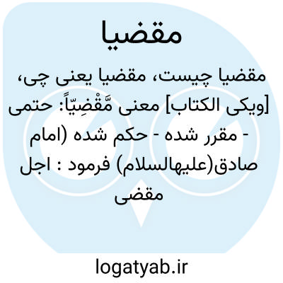 [ویکی الکتاب] معنی مَّقْضِیّاً: حتمی - مقرر شده - حکم شده (امام صادق(علیهالسلام) فرمود: اجل مقضی همان اجل حتمی است که خدای تعالی به وقوع حتمی آن حکم فرموده، و اجل مسمی آن اجلی است که ممکن است نسبت به وقوع آن بدا حاصل شود، و خداوند هر قدر بخواهد آنرا جلو انداخته و یا به تعویق ب...