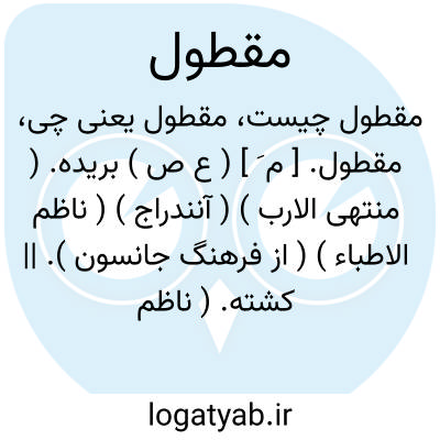 لغت نامه دهخدا مقطول. [ م َ ] ( ع ص ) بریده. ( منتهی الارب ) ( آنندراج ) ( ناظم الاطباء ) ( از فرهنگ جانسون ). || کشته. ( ناظم الاطباء ) ( از فرهنگ جانسون ).