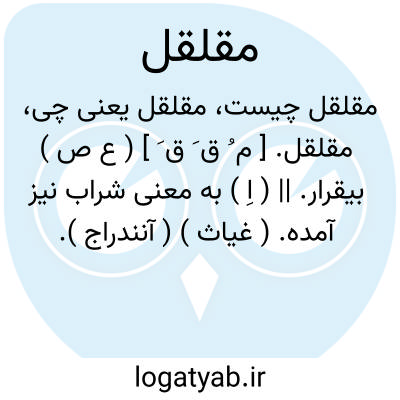 لغت نامه دهخدا مقلقل. [ م ُ ق َ ق َ ] ( ع ص ) بیقرار. || ( اِ ) به معنی شراب نیز آمده. ( غیاث ) ( آنندراج ).