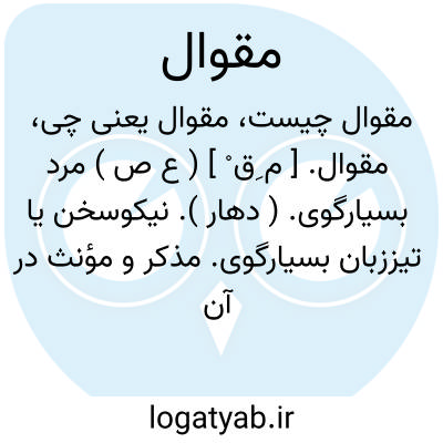 مقوال. [ م ِق ْ ] ( ع ص ) مرد بسیارگوی. ( دهار ). نیکوسخن یا تیززبان بسیارگوی. مذکر و مؤنث در آن یکسان است و گویند رجل مقوال و امراءة مقوال. ( ناظم الاطباء ) ( از منتهی الارب ). خوش بیان و گشاده زبان: امراءة مقوال و مقول؛ زن نیکوسخن و گویند زن زبان آور بسیارگوی. ( از اقرب الموارد ).