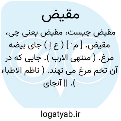 مقیض. [ م َ ] ( ع اِ ) جای بیضه مرغ. ( منتهی الارب ). جایی که در آن تخم مرغ می نهند. ( ناظم الاطباء ). || آنجای از پوست تخم مرغ که چوزه و آب بیرون می آید. ( ناظم الاطباء ) ( از اقرب الموارد ).