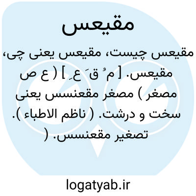 لغت نامه دهخدا مقیعس. [ م ُ ق َ ع ِ ] ( ع ص مصغر ) مصغر مقعنسس یعنی سخت و درشت. ( ناظم الاطباء ). تصغیر مقعنسس. ( اقرب الموارد ) ( منتهی الارب ). و رجوع به مقعنسس شود.