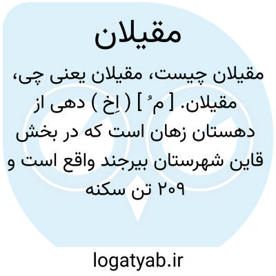 مقیلان. [ م ُ ] ( اِخ ) دهی از دهستان زهان است که در بخش قاین شهرستان بیرجند واقع است و 209 تن سکنه دارد. ( از فرهنگ جغرافیایی ایران، ج 9 ).