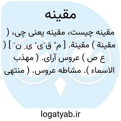 ( مقینة ) مقینة. [ م ُ ق َی ْ ی ِ ن َ ] ( ع ص ) عروس آرای. ( مهذب الاسماء ). مشاطه عروس. ( منتهی الارب ) ( آنندراج ). مشاطه. ( ناظم الاطباء ).زنی که مشاطگی کند. ماشطه. ( یادداشت به خط مرحوم دهخدا ) ( از اقرب الموارد ). و رجوع به ماده قبل شود.