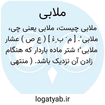 ملابی ٔ. [ م َ ب ِءْ ] ( ع ص ) عشار ملابی ٔ؛ شتر ماده باردار که هنگام زادن آن نزدیک باشد. ( منتهی الارب ) ( از آنندراج ) ( از اقرب الموارد ). ماده شترانی که هنگام زادن آنها نزدیک باشد. ج ِ مُلبی ٔ. ( ناظم الاطباء ).