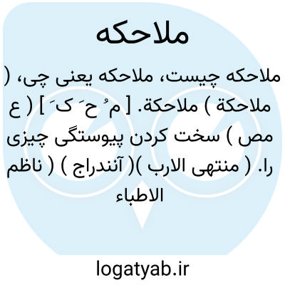 ( ملاحکة ) ملاحکة. [ م ُ ح َ ک َ ] ( ع مص ) سخت کردن پیوستگی چیزی را. ( منتهی الارب )( آنندراج ) ( ناظم الاطباء ). چیزی را به چیزی چسباندن.( از اقرب الموارد ). || درآمدن چیزی در چیزی. یقال: لوحک فقار ظهره؛ ای دخل بعضها فی بعض. ( ازمنتهی الارب ) ( از اقرب الموارد ) ( از ناظم الاطباء ).