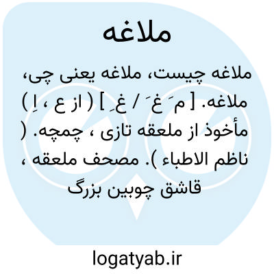 ملاغه. [ م َ غ َ / غ ِ ] ( از ع، اِ ) مأخوذ از ملعقه تازی، چمچه. ( ناظم الاطباء ). مصحف ملعقه، قاشق چوبین بزرگ که بدان سکنجبین و دیگر شربتها آشامند. ( یادداشت به خط مرحوم دهخدا ). || قاشق دسته بلند بزرگ مسین که از دیگ بدان آش کشند. ( یادداشت به خط مرحوم دهخدا ). و رجوع به ملاقه و ملعقة شود.