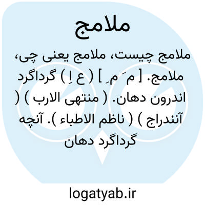 ملامج. [ م َ م ِ ] ( ع اِ ) گرداگرد اندرون دهان. ( منتهی الارب ) ( آنندراج ) ( ناظم الاطباء ). آنچه گرداگرد دهان است. مَلاغِم. ( از اقرب الموارد ).