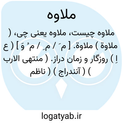 ( ملاوة ) ملاوة. [ م َ / م ِ / م ُ وَ ] ( ع اِ ) روزگار و زمان دراز. ( منتهی الارب ) ( آنندراج ) ( ناظم الاطباء ). برهه ای از زمان. ( از اقرب الموارد ). || مدت عیش. ( از ذیل اقرب الموارد ).
