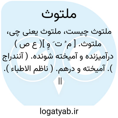 ملتوث. [ م ُ ت َ وِ ]( ع ص ) درآمیزنده و آمیخته شونده. ( آنندراج ). آمیخته و درهم. ( ناظم الاطباء ). || سستی و درنگ نماینده. ( آنندراج ). سست وکاهل. || سمین و توانا. ( ناظم الاطباء ).