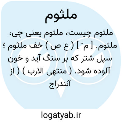 ملثوم. [ م َ ] ( ع ص ) خف ملثوم؛ سپل شتر که بر سنگ آید و خون آلوده شود. ( منتهی الارب ) ( از آنندراج ) ( از اقرب الموارد ). سمی که بر سنگ خورد و خون آلوده شود. ( ناظم الاطباء ). || بوسه و بوسه داده شده. ( غیاث ).