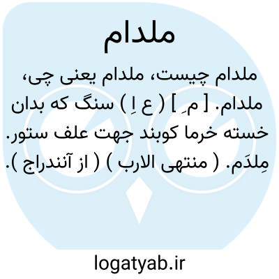 لغت نامه دهخدا ملدام. [ م ِ ] ( ع اِ ) سنگ که بدان خسته خرما کوبند جهت علف ستور. مِلدَم. ( منتهی الارب ) ( از آنندراج ). سنگی که بدان، جهت خوراک ستور، هسته خرما کوبند. ( ناظم الاطباء ) ( از اقرب الموارد ). و رجوع به ملدم شود.