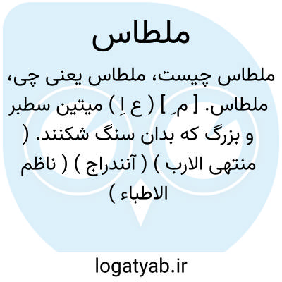 ملطاس. [ م ِ ] ( ع اِ ) میتین سطبر و بزرگ که بدان سنگ شکنند. ( منتهی الارب ) ( آنندراج ) ( ناظم الاطباء ) ( از اقرب الموارد ). و رجوع به ملطس شود. || سنگ بزرگ. ج، ملاطس. ملاطیس. ( مهذب الاسماء ). || سنگ که به وی خسته خرما کوبند. ( منتهی الارب ) ( آنندراج ). سنگی که بدان هسته خرما کوبند. ج، ملاطیس.( ناظم الاطباء ) ( از اقرب الموارد ). || صخره پهن. و گویند: ضربه بالملطاس. ( از اقرب الموارد ). || تبر دراز سرتیز. ( از اقرب الموارد ).