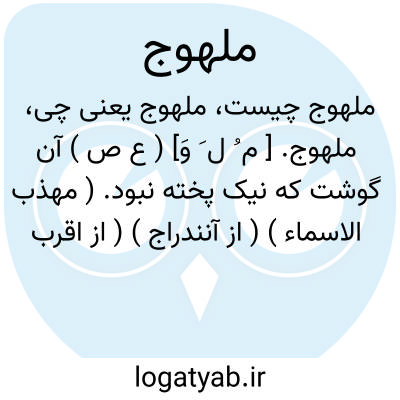 لغت نامه دهخدا ملهوج. [ م ُ ل َ وَ] ( ع ص ) آن گوشت که نیک پخته نبود. ( مهذب الاسماء ) ( از آنندراج ) ( از اقرب الموارد ). || نااستوار: حدیث ملهوج و رأی ملهوج. ( از اقرب الموارد ). مبتذل ( مثل، شعر، کلام ) ( یادداشت به خط مرحوم دهخدا ).