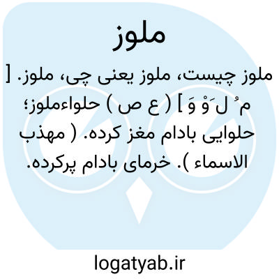 ملوز. [ م ُ ل َوْ وَ ] ( ع ص ) حلواءملوز؛ حلوایی بادام مغز کرده. ( مهذب الاسماء ). خرمای بادام پرکرده. ( منتهی الارب ) ( آنندراج ) ( از اقرب الموارد ). خرمای پرکرده از بادام و جوزاغند. ( ناظم الاطباء ). خرمای هسته بیرون کرده و لوز به جای هسته نهاده.( یادداشت به خط مرحوم دهخدا ). || روی نیکو و ملیح. ( منتهی الارب ) ( آنندراج ) ( از اقرب الموارد ): وجه ملوز؛ روی نیکو و ملیح. ( ناظم الاطباء ). || بادامی شکل و شبیه به بادام. ( ناظم الاطباء ).