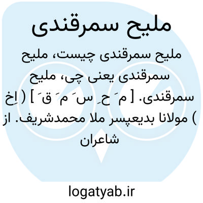 ملیح سمرقندی. [ م َ ح ِ س َ م َ ق َ ] ( اِخ ) مولانا بدیعپسر ملا محمدشریف. از شاعران قرن یازدهم هجری و از ملازمان عبدالعزیزخان حاکم بخارا بوده است. از اوست: