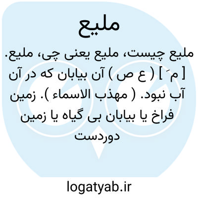 ملیع. [ م َ ] ( ع ص ) آن بیابان که در آن آب نبود. ( مهذب الاسماء ). زمین فراخ یا بیابان بی گیاه یا زمین دوردست هموار یا بر هیئت کوچه تنگ که کم از قامت مرد پست باشد و آب در وی زود خشک شود و مضمحل گردد و این در بیابانهای هموار و سخت زمین باشد. ج، مُلُع. ( منتهی الارب ) ( آنندراج ) ( از ناظم الاطباء ). || تیزرو از ناقه و اسب. ( منتهی الارب ) ( آنندراج ) ( از ناظم الاطباء ) ( از اقرب الموارد ).