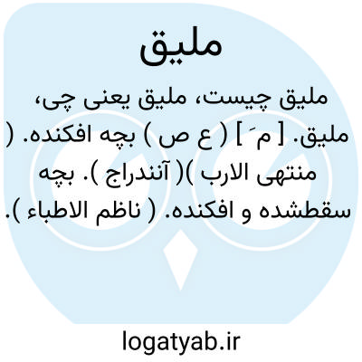 لغت نامه دهخدا ملیق. [ م َ ] ( ع ص ) بچه افکنده. ( منتهی الارب )( آنندراج ). بچه سقطشده و افکنده. ( ناظم الاطباء ).ملیق. [ ] ( ع اِ ) سیاهی با لیقه که در دوات اندازند: مگرملیق دواتت شود در این سوداهمی بپیچد بر خویش زلف حورالعین.کمال اسماعیل.رجوع به مدخل بعد شود.