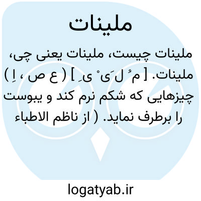 ملینات. [ م ُ ل َی ْ ی ِ ] ( ع ص، اِ ) چیزهایی که شکم نرم کند و یبوست را برطرف نماید. ( از ناظم الاطباء ). ج ِ ملینه، تأنیث ملین. رجوع به ملین شود.