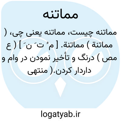 ( مماتنة ) مماتنة. [ م ُ ت َ ن َ ] ( ع مص ) درنگ و تأخیر نمودن در وام و داردار کردن.( منتهی الارب ) ( آنندراج ) ( ناظم الاطباء ). ممادة. عذر آوردن و دفعالوقت کردن. ( شرح قاموس ). دفعالوقت کردن.مماطله. ( از اقرب الموارد ). || به نهایت دور کردن. ( منتهی الارب ) ( آنندراج ) ( ناظم الاطباء ) ( از اقرب الموارد ). || دور شدن. ( منتهی الارب ) ( آنندراج ) ( ناظم الاطباء ). دور شدن در پایان. ( شرح قاموس ). || معارضه و مباراة: بینهما مماتنة؛ ای معارضة و مباراة فی کل امر. ( از اقرب الموارد ).