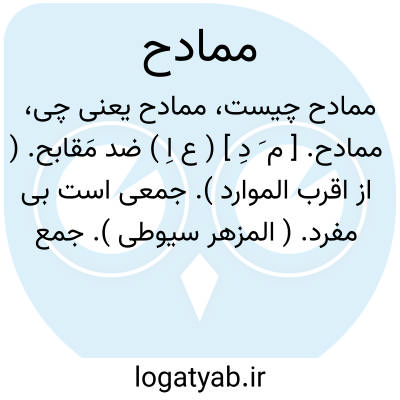 لغت نامه دهخدا ممادح. [ م َ دِ ] ( ع اِ ) ضد مَقابح. ( از اقرب الموارد ). جمعی است بی مفرد. ( المزهر سیوطی ). جمع سماعی ممدَح است و لغةً به معنی زیبائیها و ستودگیها.