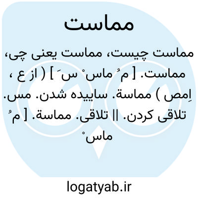 مماسة. [ م ُ ماس ْ س َ ] ( ع مص ) مس کردن. دست مالیدن. مساس. ( از ناظم الاطباء ) ( از اقرب الموارد ). یکدیگر را بسودن. ( ترجمان القرآن ). مس کردن یکدیگر را. ( ناظم الاطباء ). || آرمیدن با زن. ( از منتهی الارب )( از آنندراج ). جماع کردن. مجامعت. ( ناظم الاطباء ).