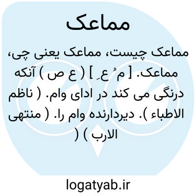 مماعک. [ م ُ ع ِ ] ( ع ص ) آنکه درنگی می کند در ادای وام. ( ناظم الاطباء ). دیردارنده وام را. ( منتهی الارب ) ( آنندراج ) ( از اقرب الموارد ).
