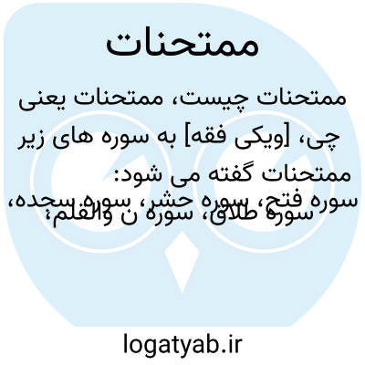 [ویکی شیعه] مُمْتحنات عنوان ۱۶ سوره از قرآن که با سوره ممتحنه تناسب محتوایی دارند.