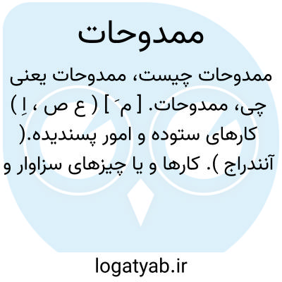 ممدوحات. [ م َ ] ( ع ص، اِ ) کارهای ستوده و امور پسندیده.( آنندراج ). کارها و یا چیزهای سزاوار و شایسته ستایش. ( ناظم الاطباء ). و رجوع به ممدوح و ممدوحة شود.
