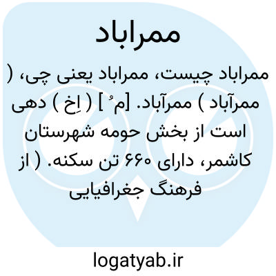 ( ممرآباد ) ممرآباد. [م ُ ] ( اِخ ) دهی است از بخش حومه شهرستان کاشمر، دارای 660 تن سکنه. ( از فرهنگ جغرافیایی ایران ج 9 ).