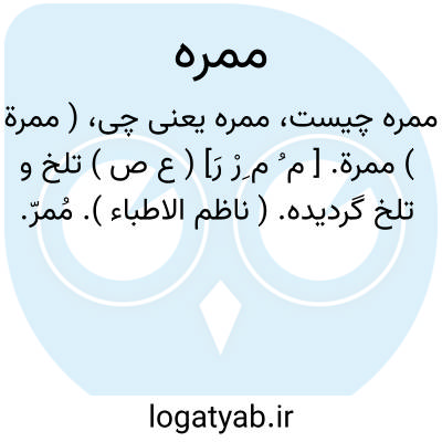 ( ممرة ) ممرة. [ م ُ م ِرْ رَ] ( ع ص ) تلخ و تلخ گردیده. ( ناظم الاطباء ). مُمرّ.