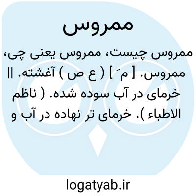 ممروس. [ م َ ] ( ع ص ) آغشته. || خرمای در آب سوده شده. ( ناظم الاطباء ). خرمای تر نهاده در آب و سوده و مالیده. ( آنندراج ). خرمای تر نهاده شده در آب یا شیر.( از اقرب الموارد ). خرمای در آب یا شیر خیسانیده.