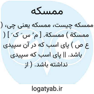 ( ممسکة ) ممسکة. [ م ُ س َ ک َ ] ( ع ص ) پای اسب که در آن سپیدی باشد. || پای اسب که سپیدی نداشته باشد. ( از منتهی الارب ) ( ناظم الاطباء ) ( از اقرب الموارد ).